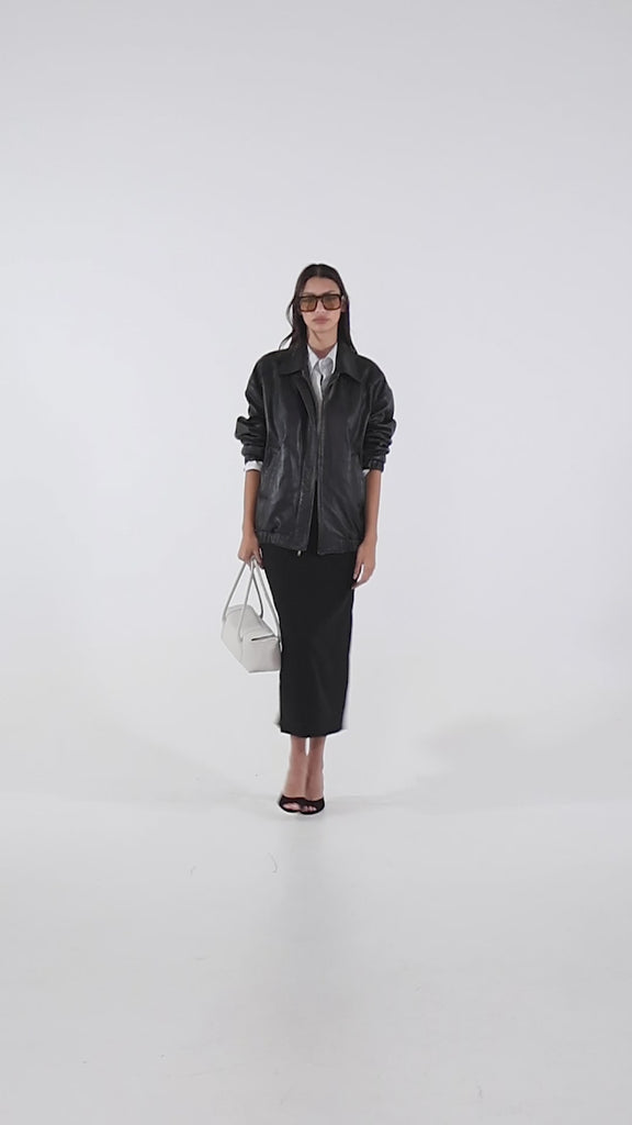 La falda Mikaela, confeccionada en un suntuoso tejido de caída impecable, emerge como un clásico reinventado, una pieza angular para cualquier guardarropa sofisticado que, gracias a su silueta versátil y minimalista, permite expresar individualidad con una camisa de seda o un top de lentejuelas, elevándose con stilettos o vanguardizando con botas chunky, y complementándose con joyería sutil o texturas contrastantes para un impacto visual fascinante.
